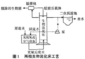 生物流化床技術(shù)是一種新型的生物膜法工藝,是繼流化床技術(shù)在化工領(lǐng)域廣泛應(yīng)用后于20世紀70年代初發(fā)展起來的。其載體在流化床內(nèi)呈流化狀態(tài),使固(生物膜)、液(廢水)、氣(空氣)3相之間得到充分接觸,顆粒之間劇烈碰撞,生物膜表面不斷更新,微生物始終處于生長旺盛階段。該技術(shù)使生化池各處理段中保持高濃度的生物量,傳質(zhì)效率極高,從而使廢水的基質(zhì)降解速度快,水力停留時間短,運轉(zhuǎn)負荷比一般活性污泥法高5~10倍,耐沖擊負荷能力強。按其生物膜特性等因素可分為好氧生物流化床和厭氧生物流化床兩大類。